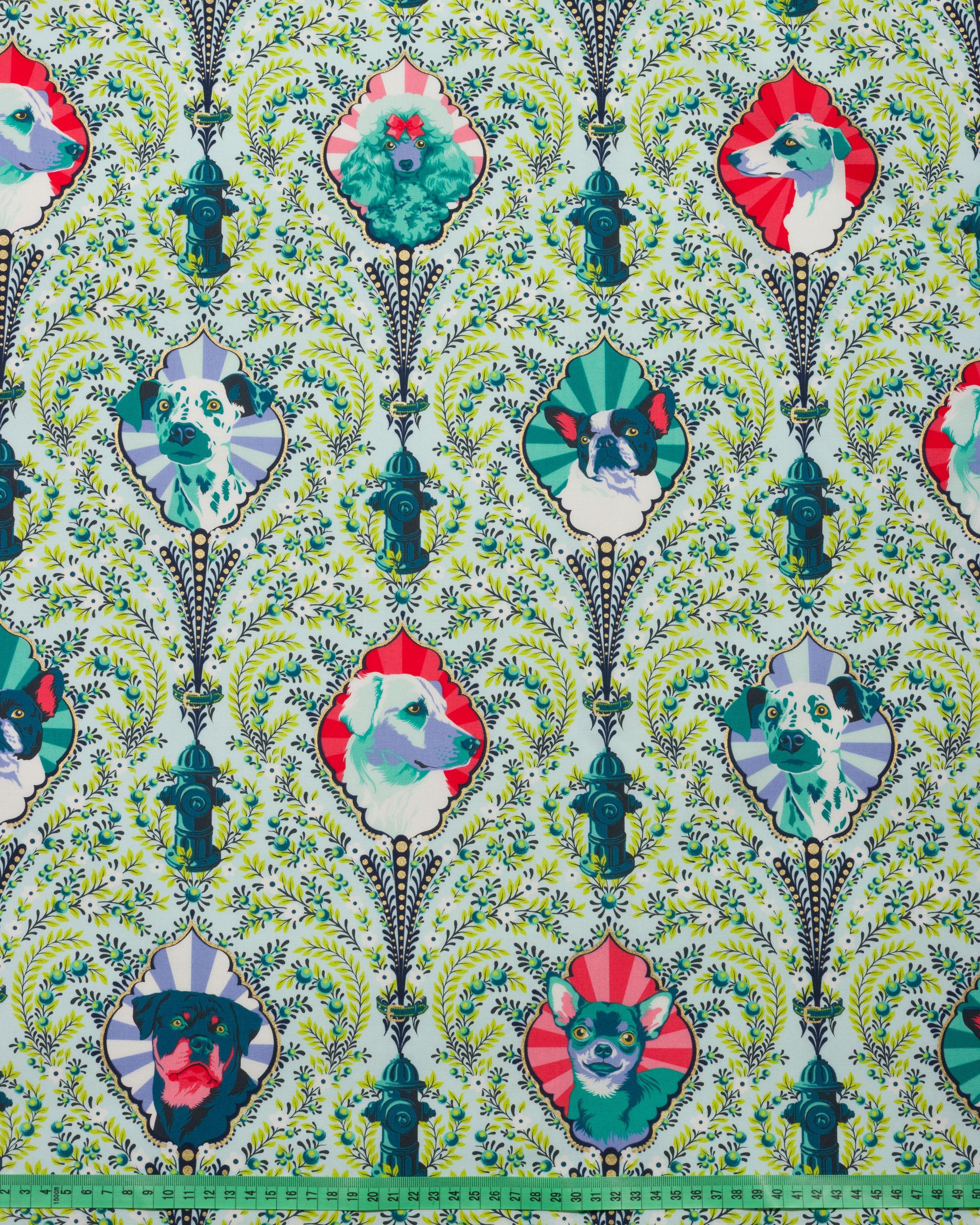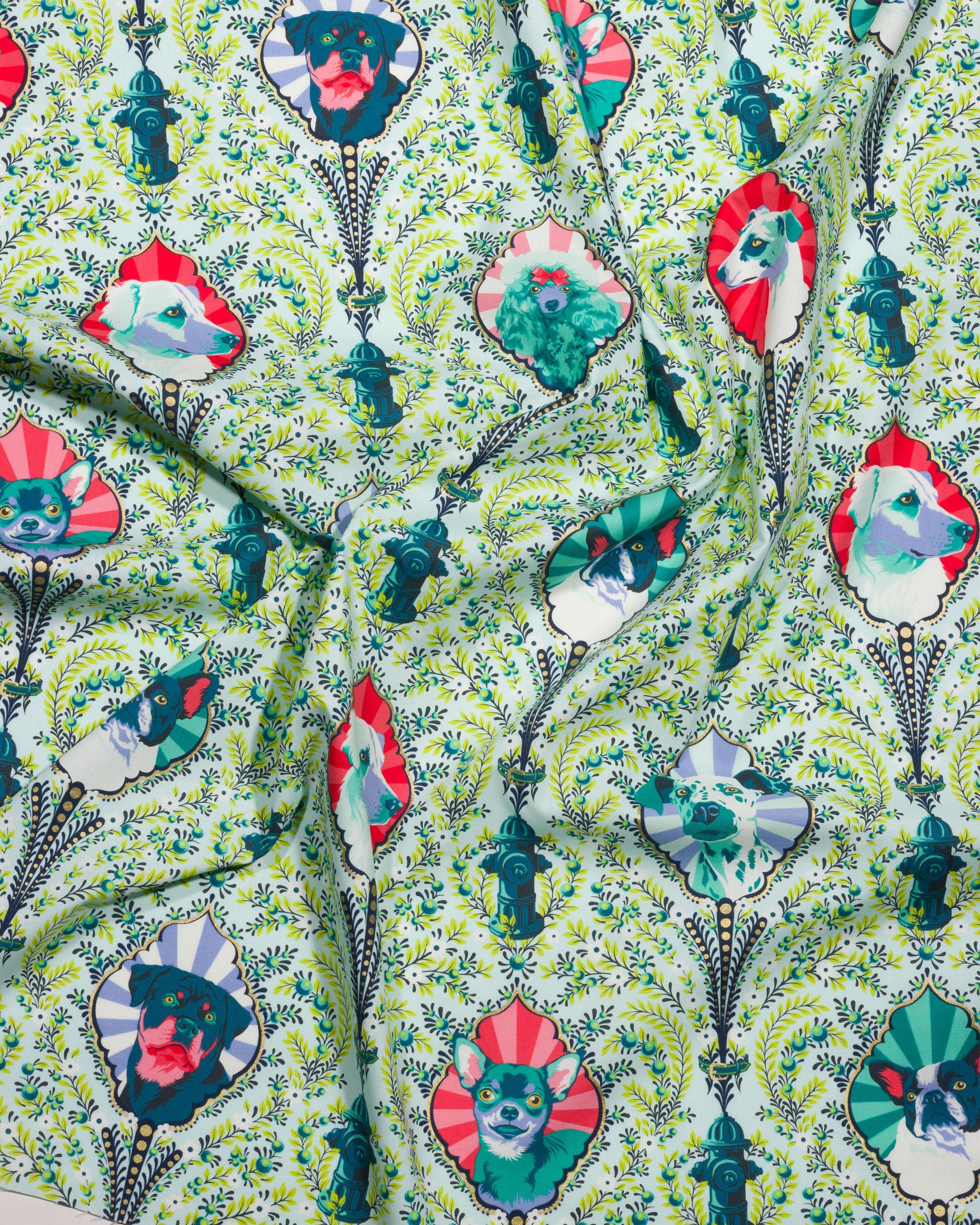 Doporučuji střih jednosměrně skládaný, tak vynikne vzor nejvíce. Raději bez kapes, aby bylo o šev méně a vzor nebyl tak narušen. Ideální délky jsou v rozmezí: 52 – 56 cm, 67 – 71 cm (to aby psi na spodním lemu nebyli rozpůlení). Ale záleží hlavně na Vás, ušiju co si napíšete 🙂 ).